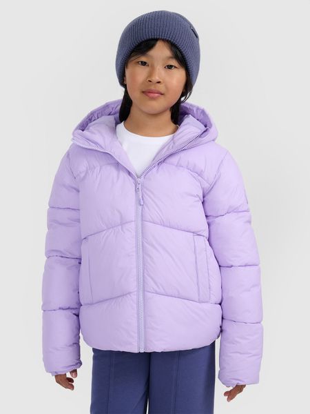 4F Kurtka puchowa z wypełnieniem syntetycznym dziewczęca - fioletowa 122 (6-7 lat)