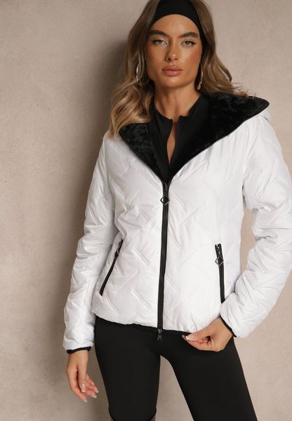 Biała Dwustronna Kurtka z Pikowanymi Przeszyciami i Kapturem Tianessa