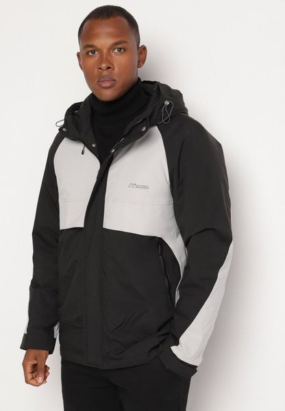Szaro-Czarna Kurtka z Kapturem Ozdobiona Sznurkami Celestinia