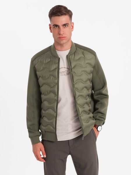 Kurtka bomberka męska z pikowanym wzorem – ciemnooliwkowa V3 OM-JALP-0141 - XXL