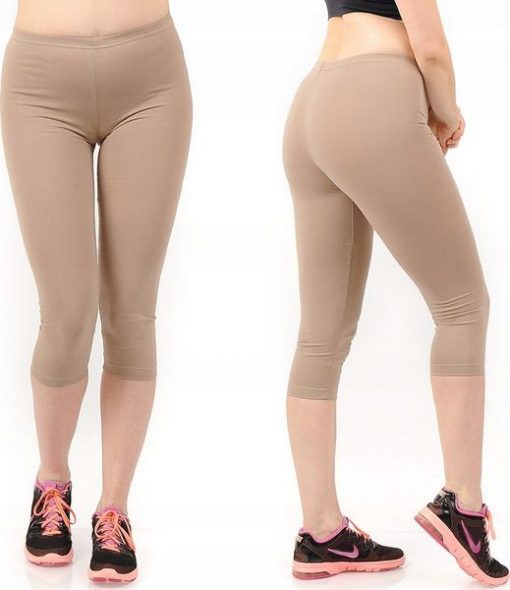 Legginsy damskie 3/4 krótkie Polskie bawełniane Getry Beżowe XXL