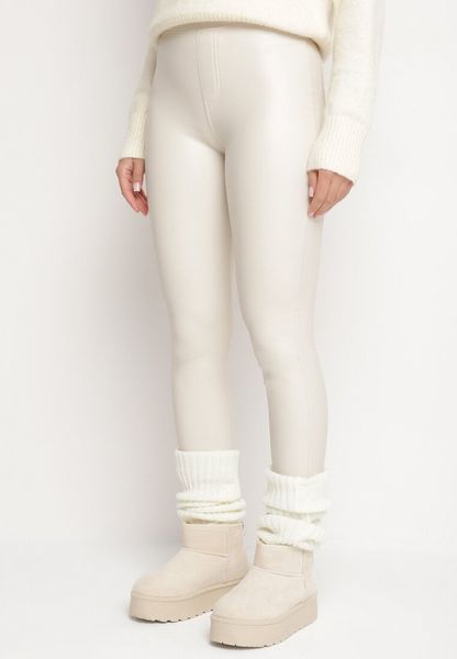 Białe Legginsy z Ekoskóry z Guzikami Wysokim Stanem i Gumką w Talii Sintheria