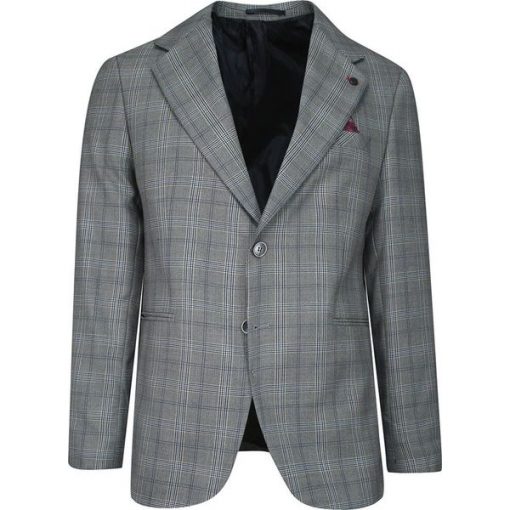 Marynarka Popielato-Szara w Kratkę, Casualowa, Slim, Dwa Guziki, Dwa Rozcięcia -GAVIOLI
