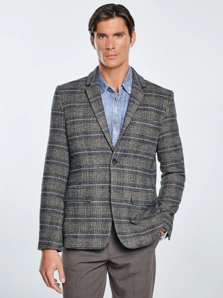 Marynarka męska z dodatkiem wełny w kratę brązowa Filo 803
