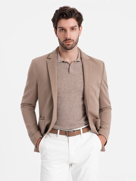Męska marynarka SLIM z dzianiny o subtelnej strukturze – beżowa V5 - Rozmiar: L