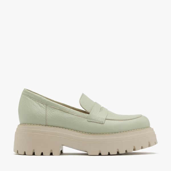 Miętowe mokasyny na grubej podeszwie