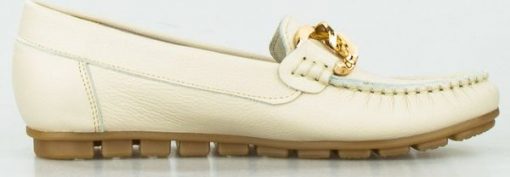 Sempre Mokasyny skórzane ze złotym łańcuchem matowe beżowe Sempre-38