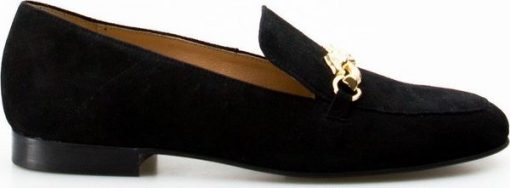 Sempre Mokasyny ze złotą ozdobą skórzane zamszowe czarne Sempre-39