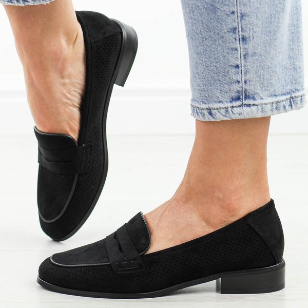Czarne zamszowe mokasyny damskie Potocki 12585