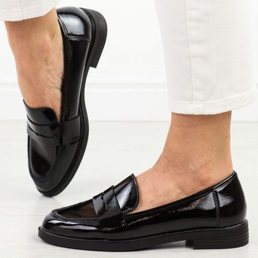 Czarne lakierowane mokasyny damskie Potocki 12442