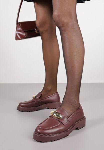 Bordowe Mokasyny Vices ze Skórzaną Wkładką i Metaliczną Ozdobą Anlee