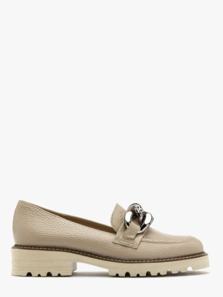 Beżowe mokasyny z ozdobnym łańcuchem z linii RYŁKO.Model wykonany ze skóry licowej.Podszewka i wyściółka skórzana.Nosek okrągły.Podeszwa płaska o grubości 4 cm.R.FLY – Niezwykle lekka i sprężysta podeszwa wykonana z materiału EVA. Zapewnia wysoki komfort użytkowania. Nieporowata, łatwa do czyszczenia wilgotną szmatką. Dystrybutor: Brawo Sp. z o.o. ul. Dworcowa 19, 34-130 Kalwaria Zebrzydowska; sklep@rylko.comKraj pochodzenia: POLSKA