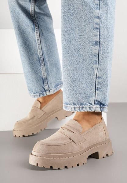 Ciemnobeżowe Casualowe Mokasyny Vices na Grubej Podeszwie Viara