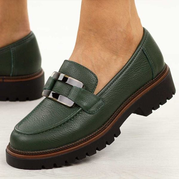 Zielone skórzane mokasyny damskie Sergio Leone 25166