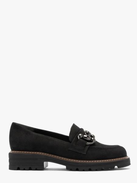 Czarne nubukowe mokasyny z ozdobą na cholewce