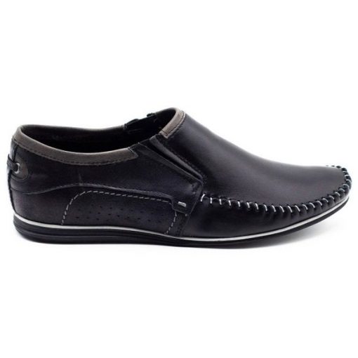 Czarne Półbuty Wsuwane Mokasyny z Ozdobnymi Sznurówkami i Przeszyciami Isovina