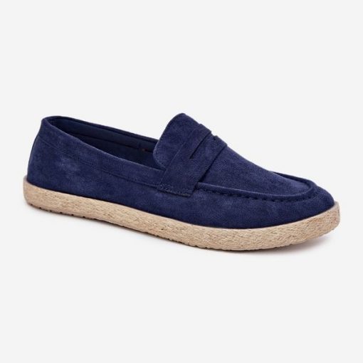 Mokasyny Męskie Z Plecionką Granatowe niebieskie