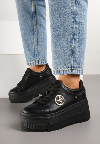 Czarne Sneakersy Vices na Grubej Podeszwie z Metaliczną Ozdobą Tatorelis