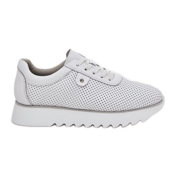 S.Barski Skórzane Buty Sportowe Na Platformie Z Brokatem LR51-629 Białe
