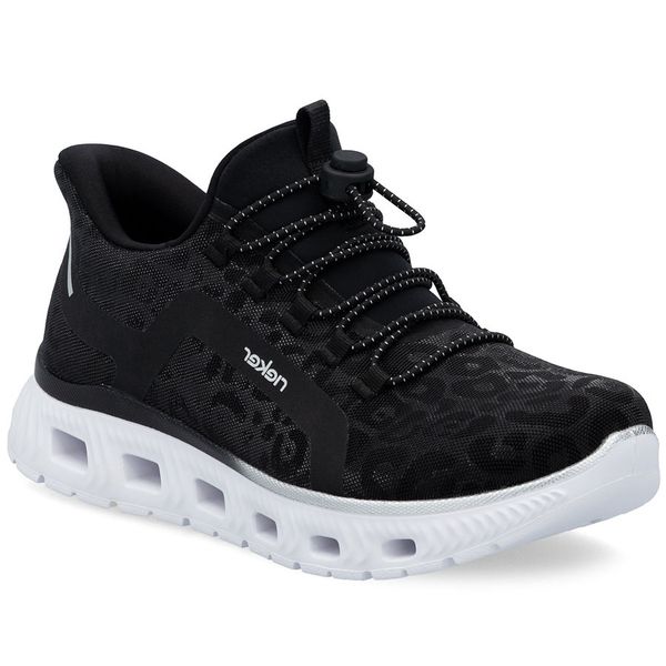 Buty sportowe damskie w panterkę czarne Rieker M6066-01