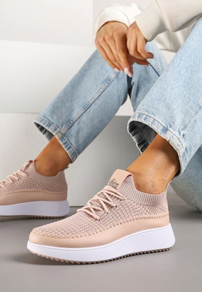 Różowe Buty Sportowe Sneakersy Siateczkowe na Tłoczonej Platformie Lurilia