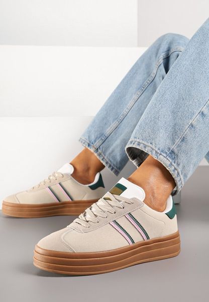 Beżowo-Zielone Klasyczne Sneakersy na Niewysokiej Platformie Terilee