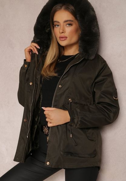 Ciemnozielona Kurtka Nylonowa Parka z Odpinanym Futerkiem Pasca