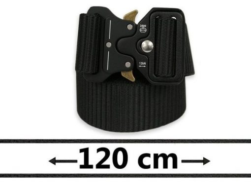 Czarny Taktyczny, Materiałowy Pasek, Solidny -Pako Jeans- 120 cm, Militarny, Klamra Typu COBRA