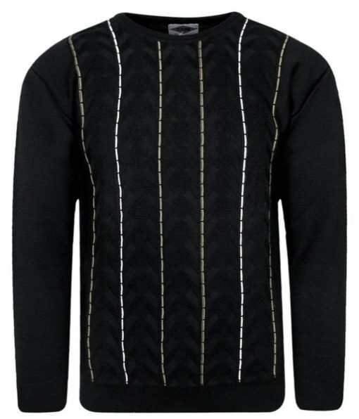 Sweter Czarny w Pionowe Paski, Okrągły Dekolt (U-neck) -KINGS- Męski