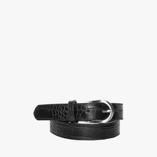 Czarny pasek damski ze srebrną klamrą PASEK DAMSKI
