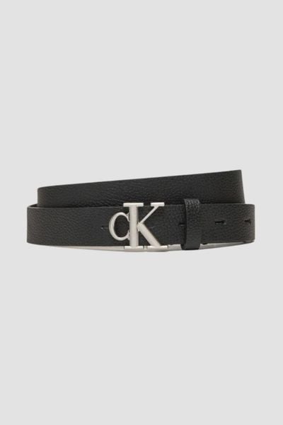 CALVIN KLEIN Czarny damski pasek ze srebrnym CK, Rozmiar 85