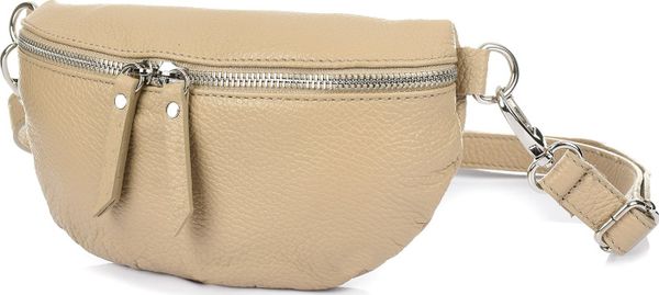 Vera Pelle Beżowa Damska Skórzana Włoska Saszetka Nerka na pasek B68
