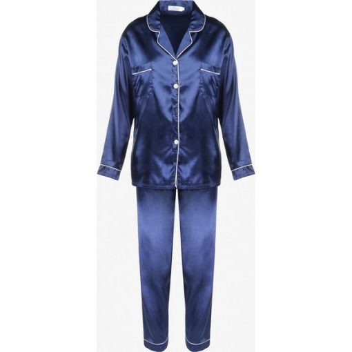 Granatowy 2-częściowy Komplet Piżamowy Satynowy Cishaias