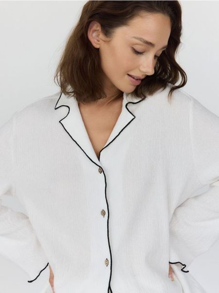 Koszula o prostym kroju, wykonana ze strukturalnej tkaniny z dodatkiem wiskozy.