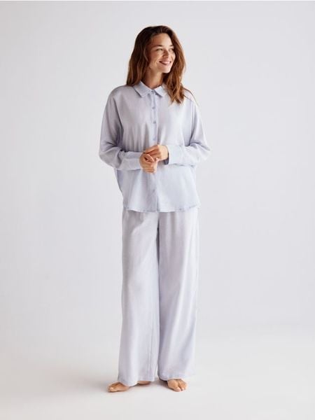 Dwuczęściowa piżama o swobodnym kroju, wykonana z tkaniny z dodatkiem lnu.