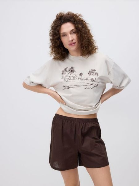 Dwuczęściowa piżama z nadrukiem – kremowy