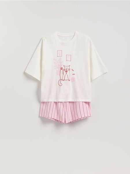 Piżama składająca się z t-shirtu i szortów, wykonana z bawełny.