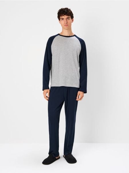 Sinsay – Piżama dwuczęściowa z bawełną – granatowy –