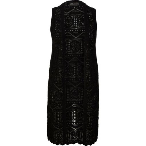 Letnia długa kamizelka ażurowa. Kamizelka ażurowa bez zapięcia. Dł. od ok. 82 cm (rozm. 36/38) do ok. 92 cm (rozm. 56/58). Można prać w pralce.