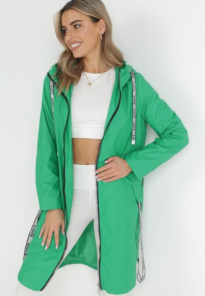 Zielony Płaszcz za Kolano z Kapturem Katine