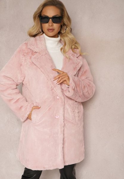Różowy Jednorzędowy Płaszcz Futrzany Jarmila