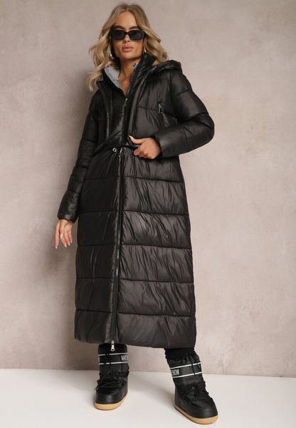 Czarna Pikowana Kurtka Płaszcz z Regulacją Długości Ortona