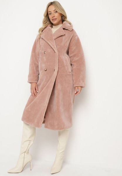 Ciemnoróżowy Płaszcz Futrzany o Dwurzędowym Kroju Rinnalina