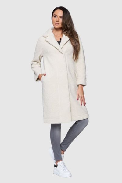 HETREGO Dwustronny płaszcz damski ecru Shannon, Rozmiar 40 EU – 44 IT