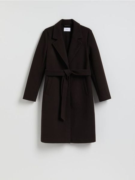 Płaszcz z wiązanym paskiem – ciemnobrązowy