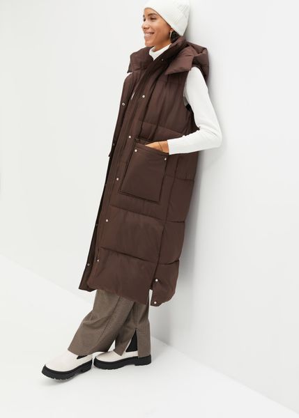 Długa kamizelka pikowana z naszywanymi kieszeniami.