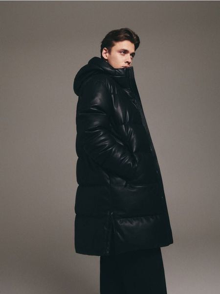 Płaszcz o regularnym kroju, wykonany z imitacji skóry.