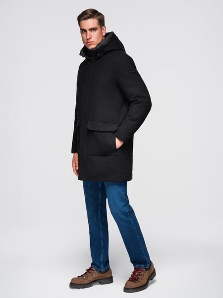 Płaszcz męski parka z wełną i kapturem – czarny V1 – Rozmiar: S