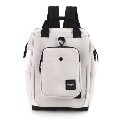 Miejski plecak Himawari w kolorze szarym z czarnymi akcentami. Wykonany z wodoodpornego materiału, pojemny – mieści A4. Wewnątrz praktyczna kieszeń na urządzenie przenośne. Wyposażony w saszetkę na ramię oraz uchwyt na walizkę. Idealny do pracy i miasta.
