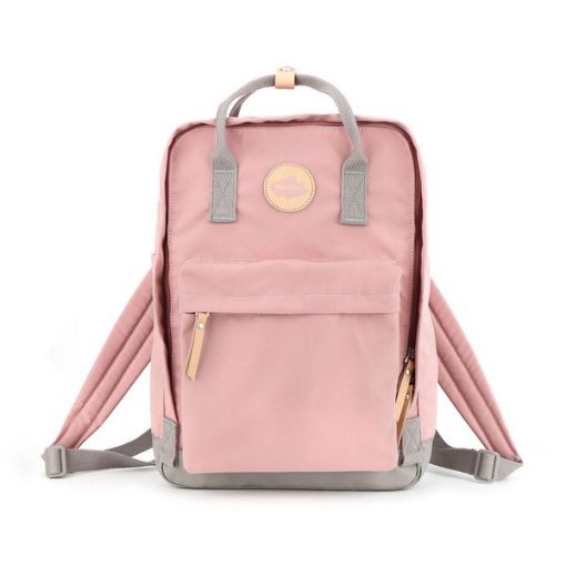 Jasnoróżowy plecak damski odszyty z wytrzymałego materiału. Pomieści format A4, wykonany z wodoodpornego materiału. Wyposażony w wiele kieszeni, wygodne szelki i wzmocniony uchwyt. Plecak zamykany suwakiem.